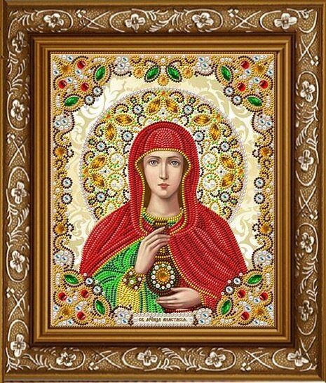 Рисунок на ткани для вышивки бисером ЖК-4010 Святая Анастасия в кристаллах и жемчуге 20х24см